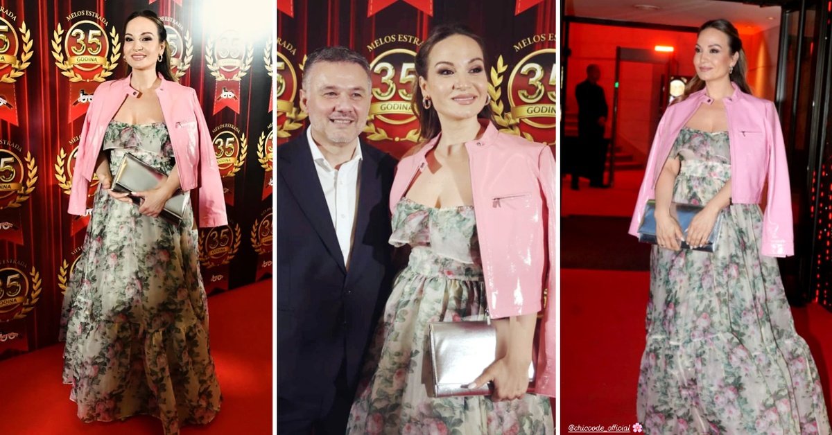 41-годишната српска пејачка изгледаше занесно во долг цветен фустан, кој го надополни со розова јакна.