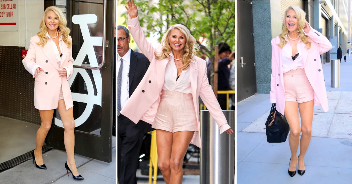 За гостувањето во емисијата „The View“, Кристи ги покажа тонираните нозе во розов стајлинг со кратки панталони и долго сако.