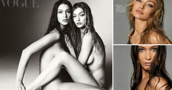 Покрај црно-белата фотографија на која 22-годишната Џиџи и 21-годишната Бела се целосно голи, објавени се уште две фотографии на кои тие носат иста креација од Версаче.