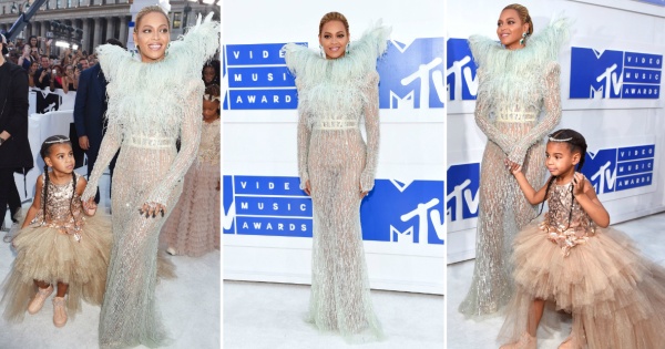 Бијонсе ја понесе со себе својата мала ќерка на доделувањето на видео музичките награди на MTV. 34-годишната пејачка и слатката Блу Ајви во впечатливи креации го привлекуваа вниманието на присутните на манифестацијата.