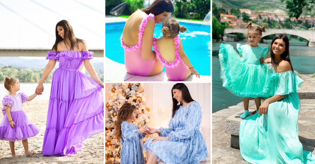 Модерната мајка од Србија се облекува во складни комбинации со малата ќеркичка, а тоа ѝ помага во промоцијата на креациите кои ги продава.
