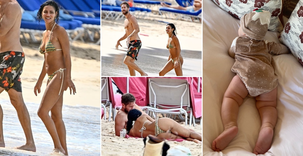 Калвин Харис со сопругата Вик релаксирани во костими за капење на плажа на Барбадос 5 месеци по раѓањето на синчето