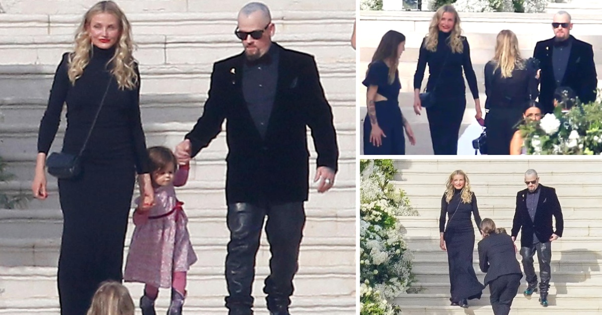 Камерон Дијаз за рака со малата ќеркичка и сопругот на свадбата на Софија Ричи во Франција