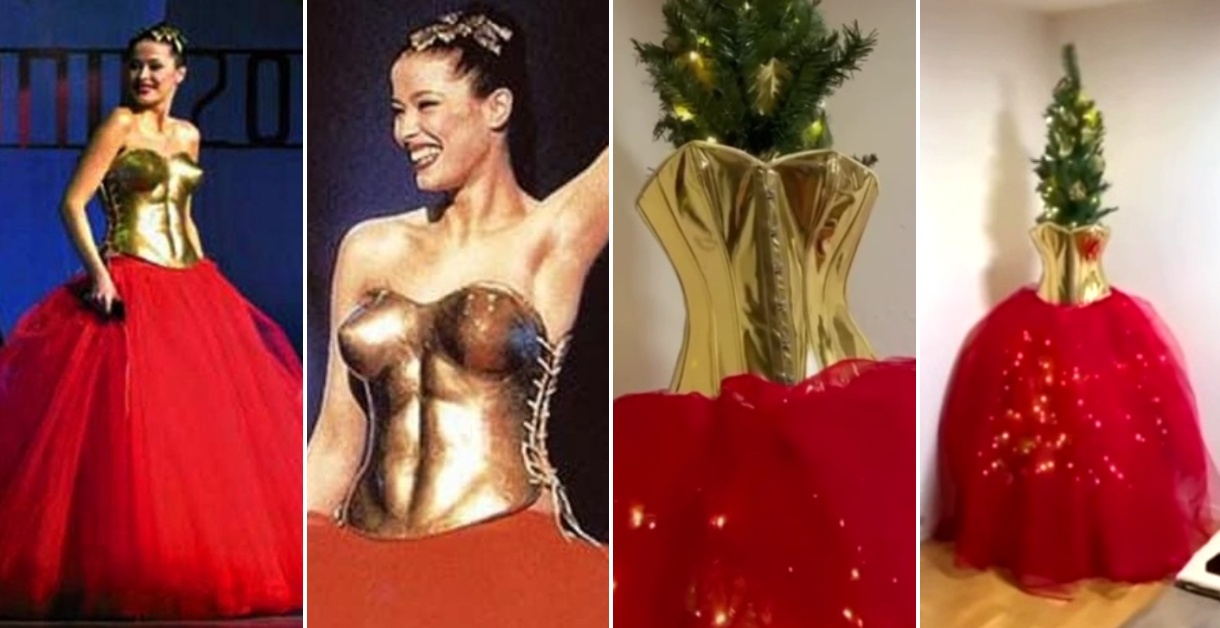 Неговата новогодишна елка е „облечена“ во златно-црвен фустан каков што Гочева носеше на музичкото натпреварување.