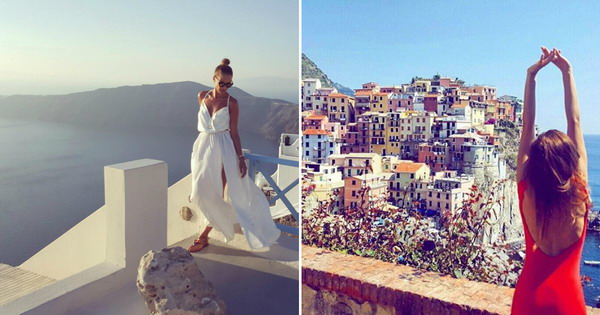 Нејзините фотографии на Instagram покажуваат мал дел од летните авантури на Санторини и Миконос во Грција и Риомаџоре и Манарола во Италија.