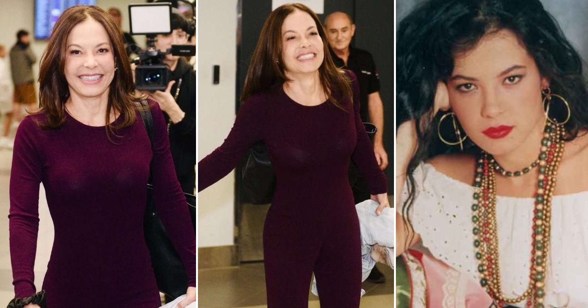 51-годишната актерка беше дочекана од српските фоторепортери и новинари на аеродромот во Белград. Ѕвездата од серијата „Касандра“ носеше припиен бордо комбинезон кој го истакна нејзиното фит тело.