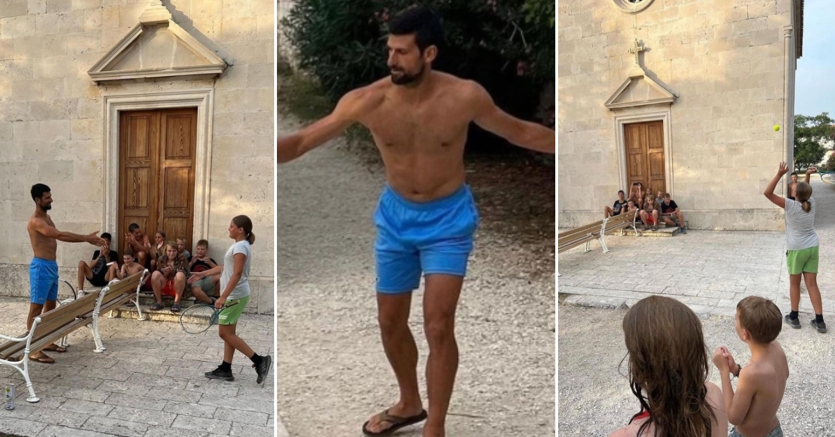 Српскиот тенисер се поздрави со децата, а потоа играше на улица со нив на импровизирано игралиште, на кое клупите беа мрежа. Фотографиите од слатката случка сега се споделуваат на социјалните мрежи и му носат само комплименти на успешниот спортист.