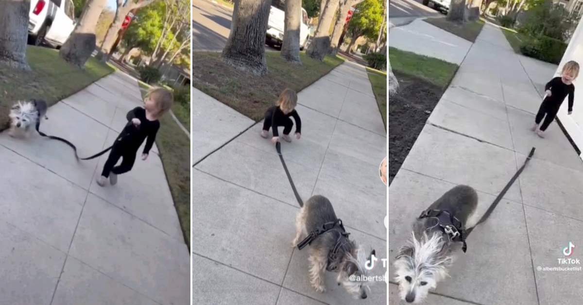 Слатката прошетка на мало девојче и семејното куче ќе ве насмее.