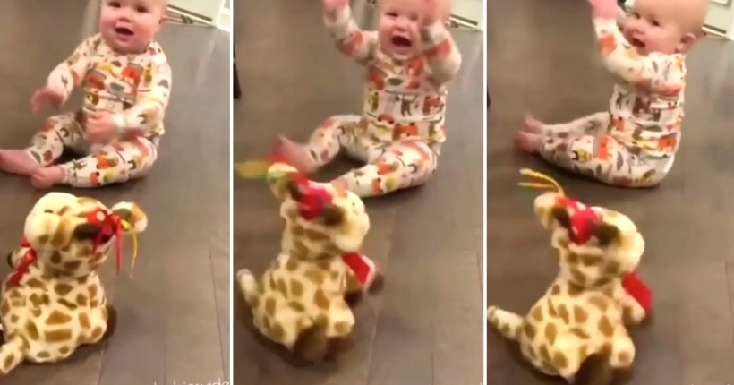 Видео од бебенце кое се врти во круг, имитирајќи ја омилената играчка ќе ви го разубави денот.