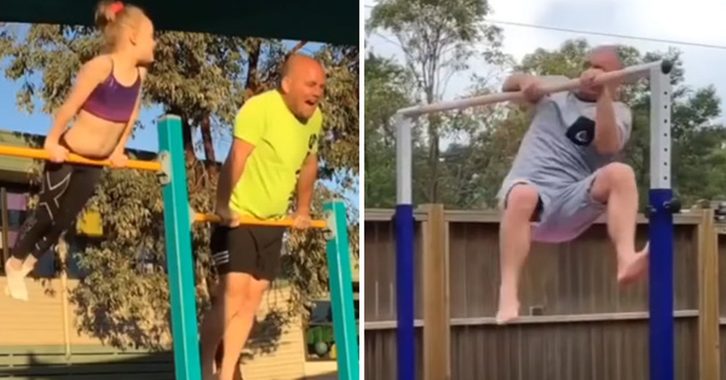 Еш Милс се обидува да ги пресоздаде гимнастичките вежби на ќерка си Алекс, кои се на напредно ниво. Видеата го направија интернет хит.