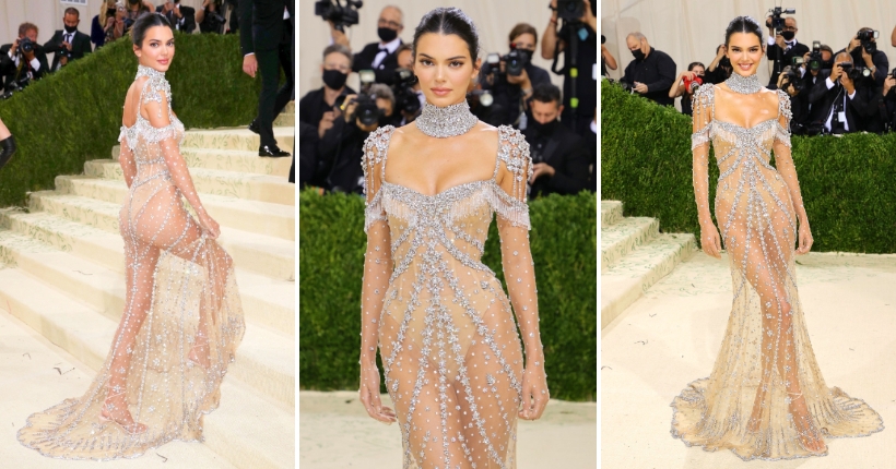 Кендал Џенер кокетно позираше на црвениот тепих на Мет Гала. Убавиот модел мамеше погледи со транспарентна креација декорирана со блескави камења од Живанши.