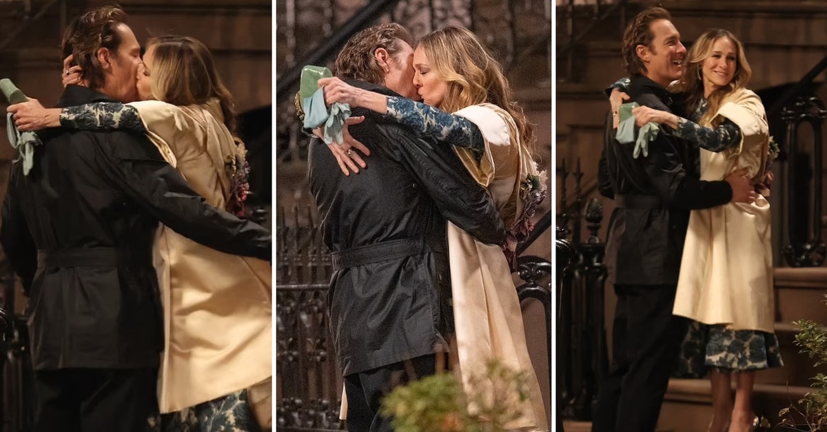 Кери и Ејдан повторно заљубени: Сара Џесика Паркер и Џон Корбет страсно се бакнуваат на сетот на „And Just Like That“