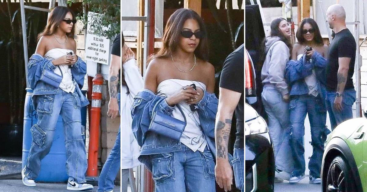 Блу Ајви Картер беше фотографирана додека се упатуваше на вечера со пријателки во Cipriani во Беверли Хилс. 12-годишната девојка експериментираше со популарниот тренд „двоен џинс“, комбинирајќи широки фармерки со странични џебови и џинс јакна.