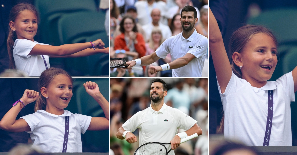 Секоја победа на Вимблдон, Новак Ѓоковиќ ја прославува со „пумпање“ со неговата ќеркичка Тара, која верно го бодри од публиката.