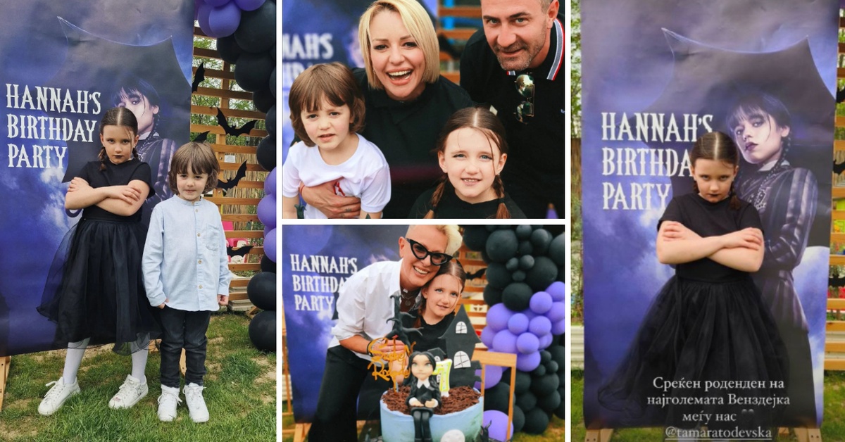 Малата Хана наполни седум години. Ќеркичката на Тамара Тодевска и Александар Димитровски – Мачка го прослави својот роденден на забава инспирирана од хит серијата „Wednesday“.