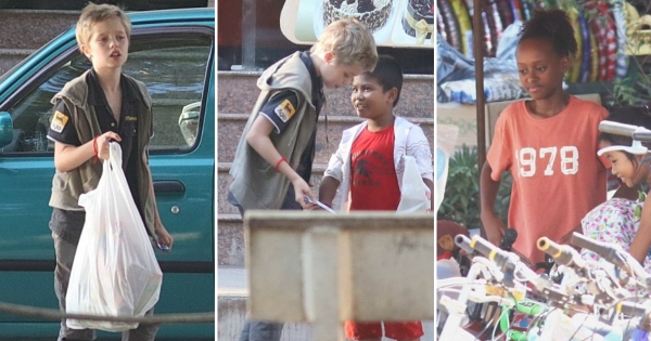 Ќерките на Анџелина Џоли и Бред Пит донираа облека за сиромашни деца во Камбоџа