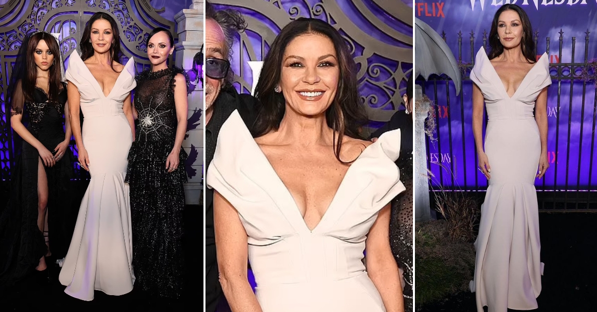Кетрин Зета-Џонс шармираше на премиерата на новата серија за мрачното семејство Адамс во Лос Анџелес.