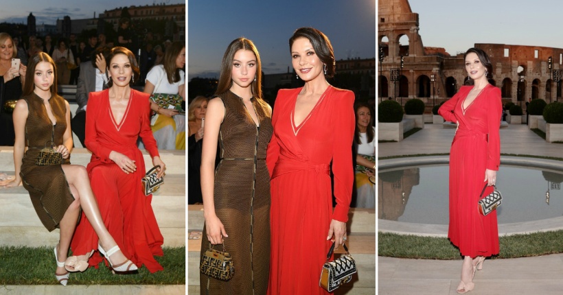 Кетрин Зета-Џонс беше меѓу славните гости кои уживаа во модното шоу на Фенди до Колосеумот во Рим.