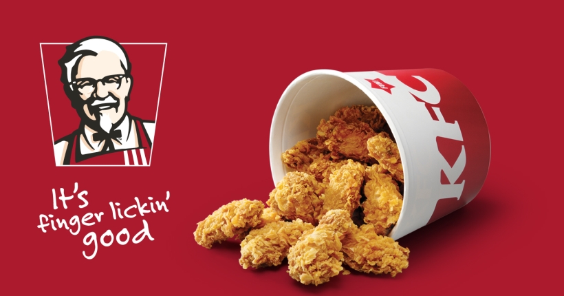 Од раните 1990-ти, KFC го прошири своето мени за да понуди други производи како што е крцкаво пилешко филе, и други специјалитети од пилешко месо, гарнир како што се помфрит и пире од компири, десерти и безалкохолни пијалаци. KFC е познат по своите слогани „It’s Finger Lickin Good„, и таа изјава не може да биде поточна затоа што „Никој не прави пилешко како KFC“.
