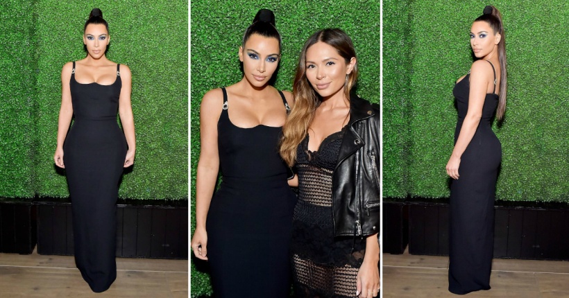 За настанот, Ким ги истакна облините во црна креација од Версаче. Силна шминка и високо коњско опавче го надополнуваа нејзиниот стилски избор.