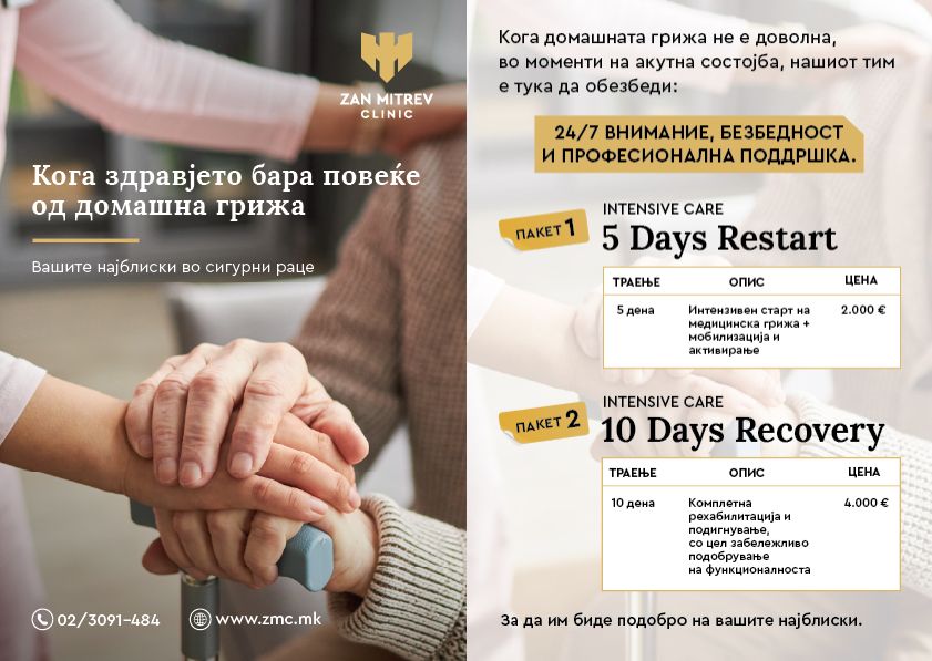 Од професионалната установа креираа два пакети за интензивна нега кои овозможуваат 24/7 внимание, безбедност и професионална поддршка.