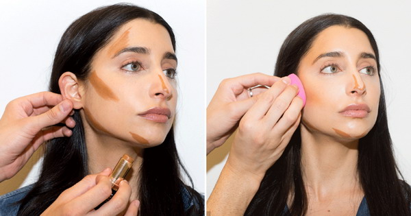 Откако внимателно ќе ја размачкате темната пудра, нанесете светла пудра под очите и по средината помеѓу долната вилица и јаболчиците. Потоа нанесете малку пудра на најиспакнатиот дел од брадичката, помеѓу веѓите и по должината на коската на носот.