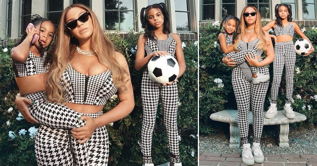 На нив, 40-годишната пејачка позира со двете ќерки, Руми и Блу Ајви, облечени во складни комбинации од долгоочекуваната колекција. На една од фотографиите,