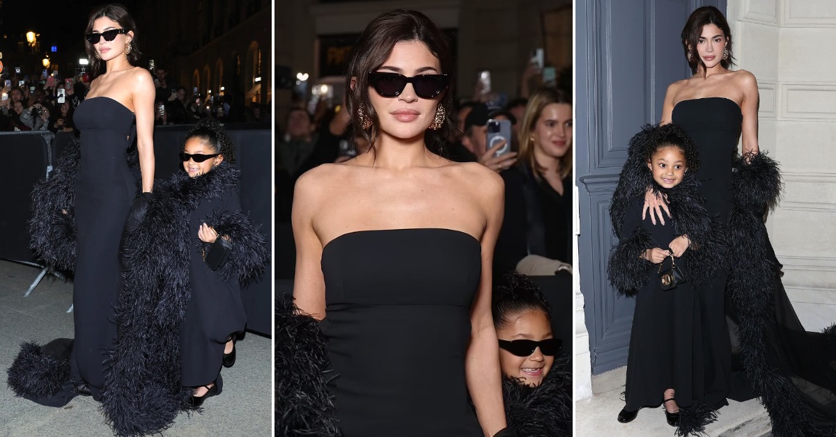 26-годишната бизнисменка пристигна на модното шоу заедно со 5-годишната ќерка Сторми. Двете носеа иста црна модна комбинација, која вклучуваше минималистички фустан, наметка со пердуви и очила, додека пристигнуваа на настанот во рамките на Париската недела на високата мода.
