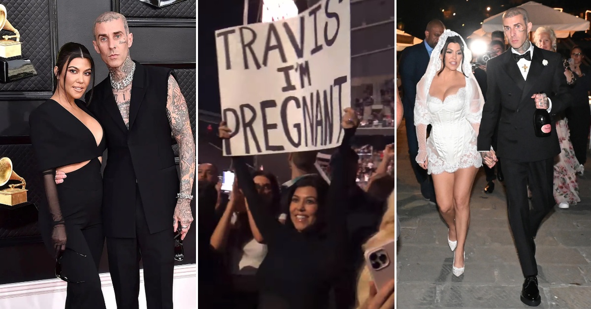 Среќната вест Кортни му ја соопшти на Тревис сред негов концерт со Blink-182 во Лос Анџелес. Таа се појави во публиката со транспарент на кој пишуваше „Тревис, бремена сум!“.
