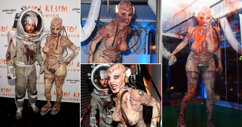 На нејзината традиционална забава за Ноќта на вештерките во Њујорк, 46-годишната Германка се појави во врвна маска заедно со својот сопруг. На настанот, креативниот модел пристигна како ужасен вонземјанин, возејќи се во приколка со стаклени ѕидови покрај Том Каулиц, кој носеше крвав костум од астронаут.
