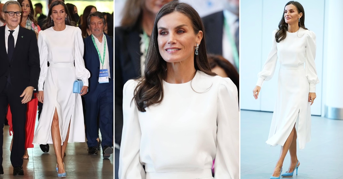 50-годишната припадничка на шпанското кралско семејство изгледаше елегантно во пролетен бел фустан на деветтата Европска конференција „Тутун и здравје“ која се одржа во Шпанија.