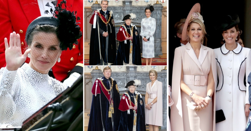 На церемонијата по повод одликувањето на кралевите со титулата „Knight of the Garter“, шпанската кралица беше облечена во црно-бела комбинација од брендот Cherubina.
