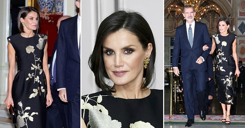 На церемонијата, на која Филипе му го врачи реномираното признание на професорот Хавиер Серкас, шпанската кралица изгледаше префинето во црно-златна комбинација.