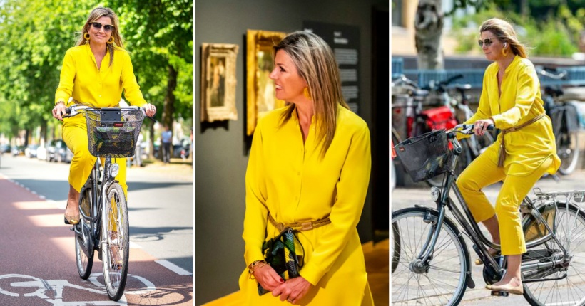 49-годишната холандска кралица изгледаше модерно и шик во жолта комбинација за време на посета на Музејот на уметноста во Хаг.