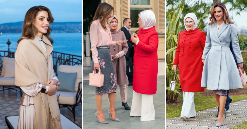 На дипломатската средба во Истанбул, 48-годишната кралица носеше здолниште од Прада, свилена блуза од Ботега Венета и обувки од Џанвито Роси. 63-годишната турска прва дама беше облечена во бели панталони и палто во впечатлива црвена боја.