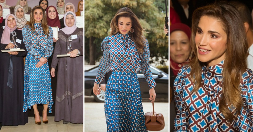 На доделувањето на наградите на просветни работници кои се истакнале во изминатата година, 49-годишната сопруга на кралот Абдула II се појави во комплет од Zara.