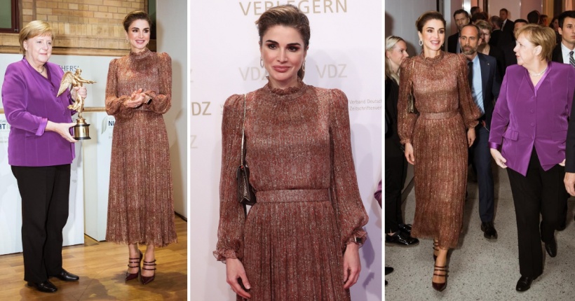 48-годишната кралица на Јордан ѝ ја врачи статуетката на успешната политичарка на свеченост која се одржа вчера во германската метропола.
