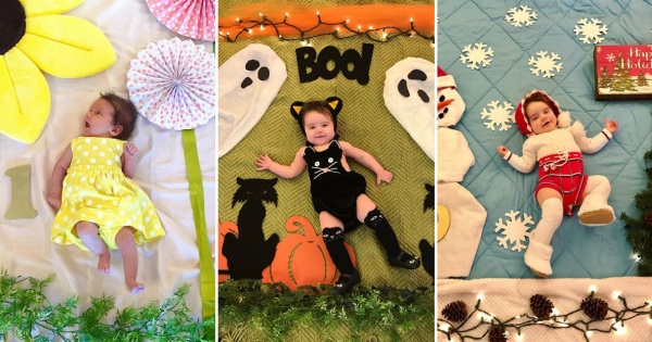 Креативна мајка го одбележува секој месец од првата година на ќеркичката со забавни фотографии