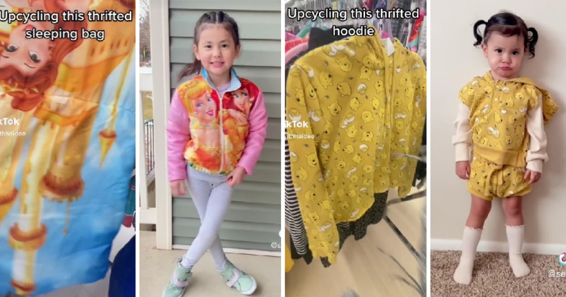 Мајка им создава на ќерките модерни парчиња од стара облека која ја купува во продавници за втора употреба и вели дека успева да заштеди над 300 долари годишно.