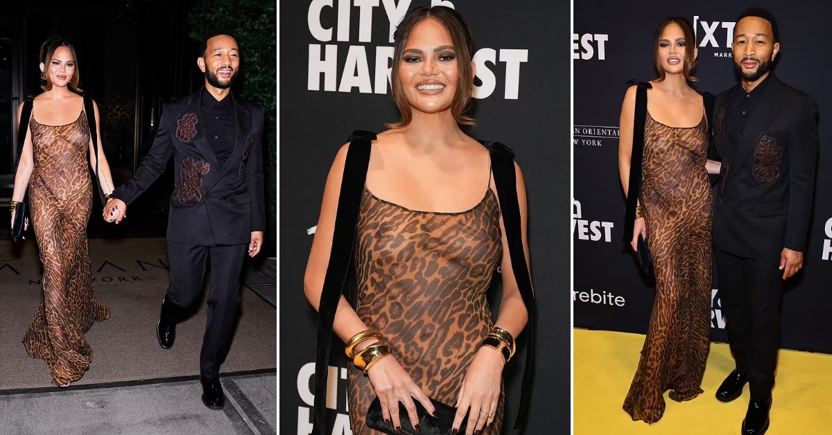 Криси Тиген во проѕирен фустан без градник покрај Џон Леџенд на добротворна гала во Њујорк