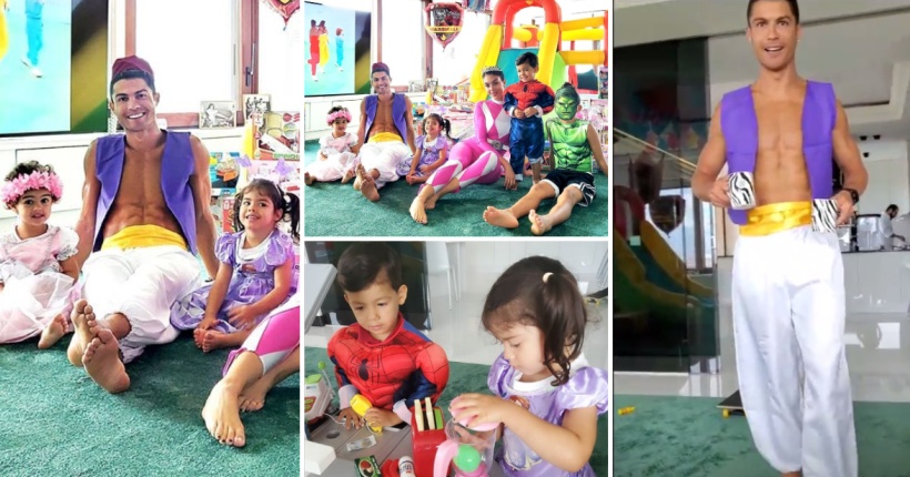 Кристијано Роналдо се претвори во Аладин за роденденот на своите мали близначиња.