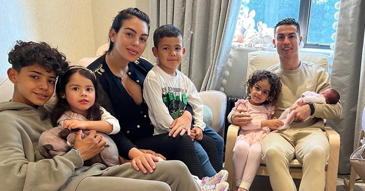 Славниот фудбалер го држи малото девојче во прегратка, додека до него седи и ќеркичката Алана Мартина. Покрај нив позира неговата сакана Џорџина Родригез со останатите нивни деца, близнаците Ева и Матео и Кристијано Џуниор.