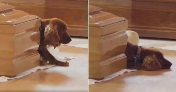 Кокер шпаниел, кој одби да го напушти ковчегот на мртвиот сопственик, му покажа на светот што значи лојалност.