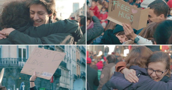 Стотици лица се собраа на плоштад, делејќи бесплатни прегратки и пораки за надеж, љубов и сочувство.
