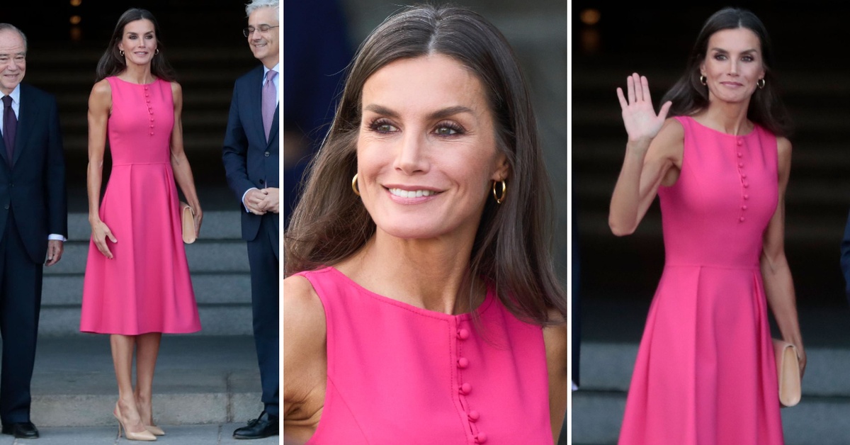 За официјален настан во Мадрид, 49-годишната сопруга на шпанскиот крал носеше розов фустан од Каролина Ерера. Својот стајлинг, таа го комплетираше со елегантни бежови обувки и чантичка.