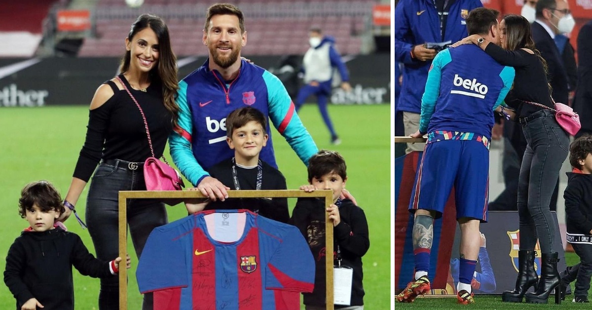 Славниот фудбалер славеше на теренот со сопругата Антонела и трите мали синчиња, Тијаго, Матео и Чиро.