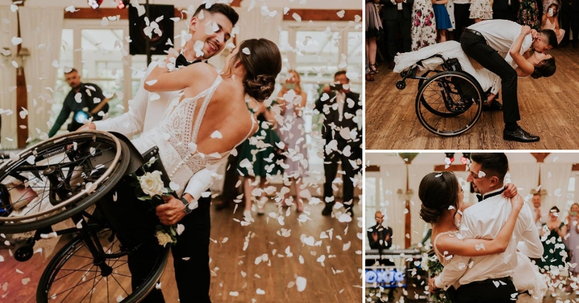 Љубов: Фотографиите од првиот танц на младоженец и невеста во инвалидска количка топат срца