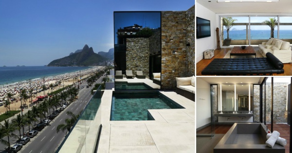 Амбросио се релаксираше во стан со четири спални соби, четири бањи, сауна и приватен базен со поглед кон плажата во Ипанема.