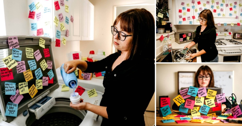 Мајките имаат илјадници работи на ум и никогаш не прават пауза. Фотографката Кајла Матокс се обиде преку фото-серијал да долови како навистина изгледа мајчиниот ум.