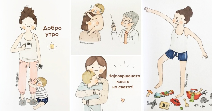 Од бесценетите прегратки, непреспани ноќи, па сè до „страшната“ посета на доктор... погледнете ги цртежите кои ќе допрат до секоја мајка.